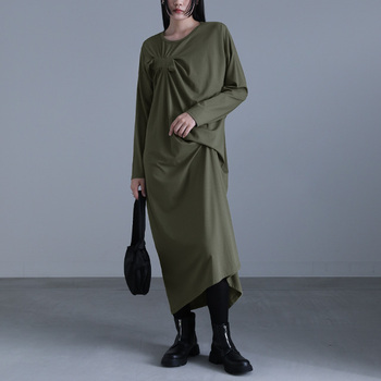 Otoño Invierno Modo Cuello con volantes Asimétrico Drapeado Casual Elegante Retro Tamaño grande Midi I-Line Corte deformado Tejido Suave Grueso
